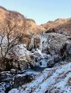 My memories of this area are from the 60s, plunging into the cool pools of upper Eskdale as relief from the summer sun. Different, but just as pretty to look at are the frozen falls around Throstle Garth below Thorneythwaite crag at the end of November.