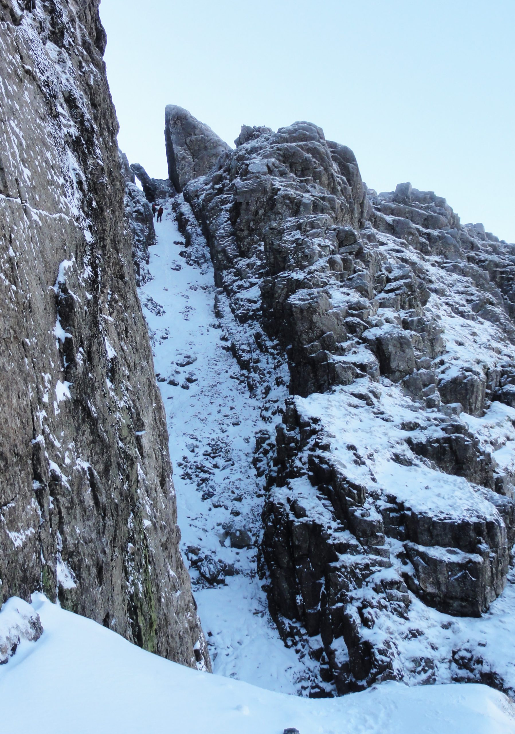 Cam Spout, on the far side below Broad Stand and Mickledore and leading to the ridge is just a twist of frozen green ice.