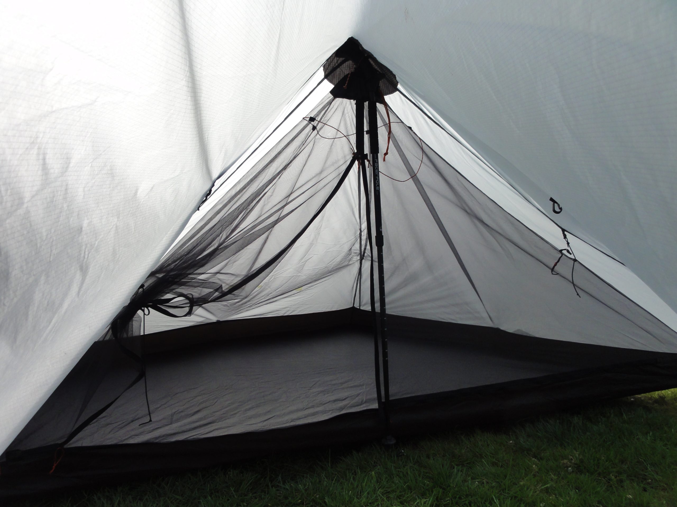 Oook make this with fine mesh on top of a silnylon bathtub style ground sheet. It is sized generously for one person and takes up about half the interior floor space of the MLD Trailstar. Once the Oook is set-up the Trailstar suddenly transforms – there’s a front and a back, a vestibule, and a sleeping area.