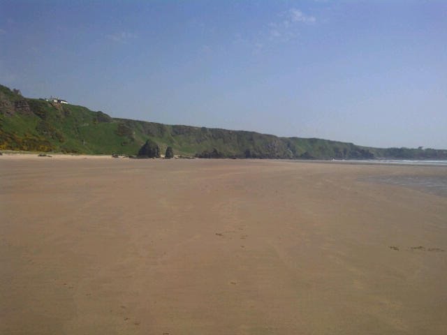 And a stunning view down the cliff to a wide wide stretch of sand backed by sandhills and a few tiny figures walking along the glistening shore.