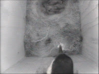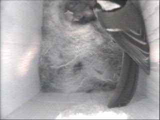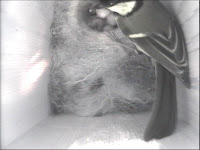 Blue Tit Ways explains that our nest box was adopted by a bird which layed 7 eggs. It sat on them for two weeks day and night with only short breaks until one day, early in the morning, it disappeared. A nest without a bird is very concerning when you are used to it always being there filling your screen!