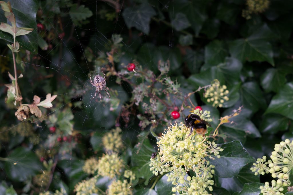 Suddenly there’s a new perfume in the air. As other plants fade ivy is in bloom everywhere, and bees are making their last sorties for nectar. To be stored as over-wintering food.