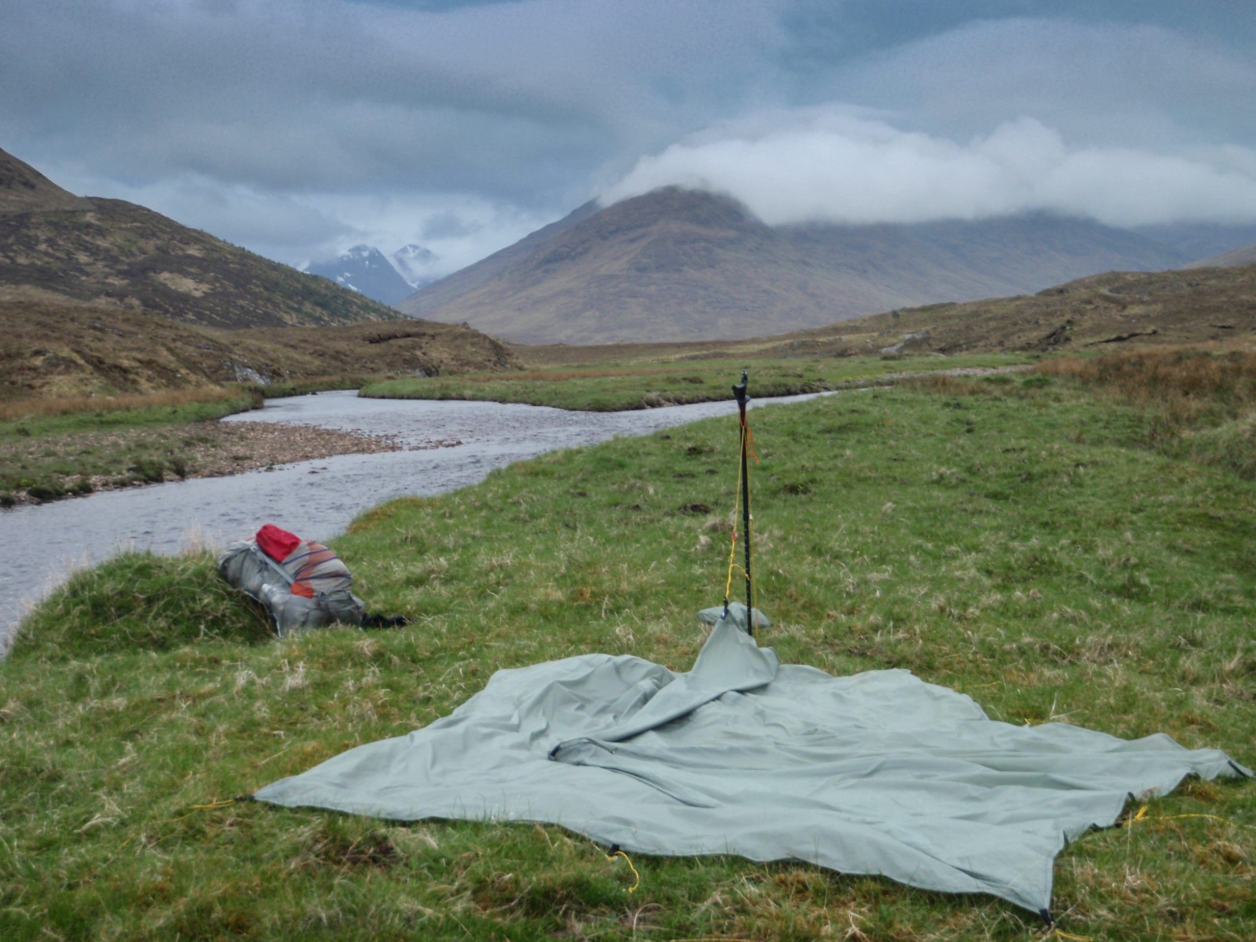 Despite a less than early start, a few minutes walking brought me level with a small encampment of Trailstars across the valley below. One was bright yellow so I knew this was Lee, with fellow walkers Peter, and Gareth from the bothy the night before.