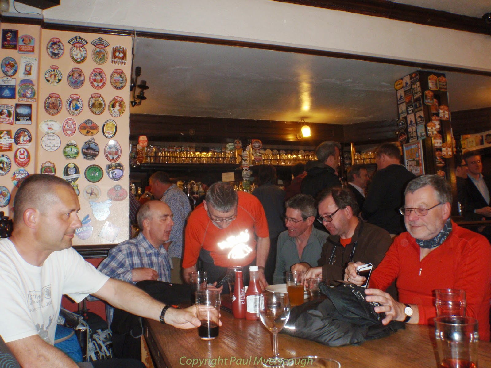 Here we can see a collection of TGOers limbering up for the night train from London to Scotland. The one with the light shining through shares his experiences here.