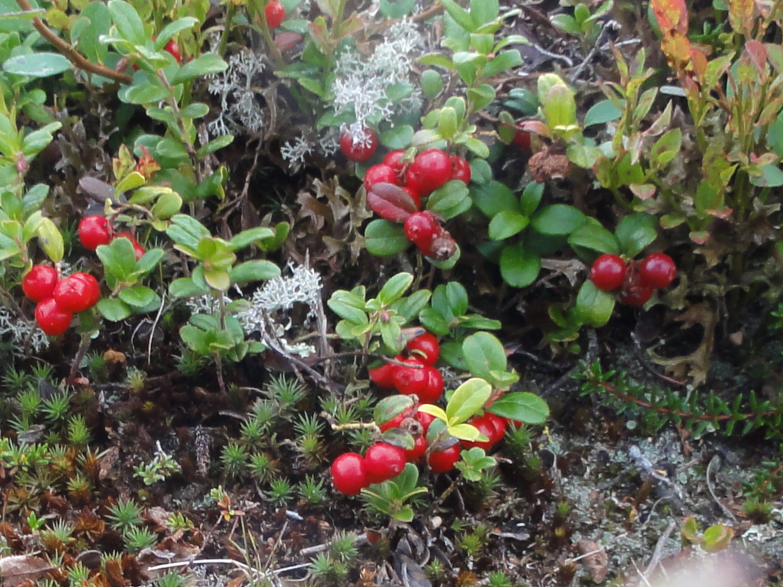 This is late in the berry picking season, however we were not disappointed. The main carpet was blueberries (bilberries or blåbær)– smaller and tastier than those UK supermarket monsters from Poland. These are regular eating material, great to collect for dessert but also to eat while waiting for the others to catch up. Looking similar, but not as tasty are Mikkelsbaer – supposedly good for flavouring liquor. Krekling translate to crowberry and are quite different – black, juicey with big pips that need to be spat out. My main target for collection was tyttebær apparently cowberry in English. This red berry is used in a jam to accompany roast meats and a requirement of our Christmas table.