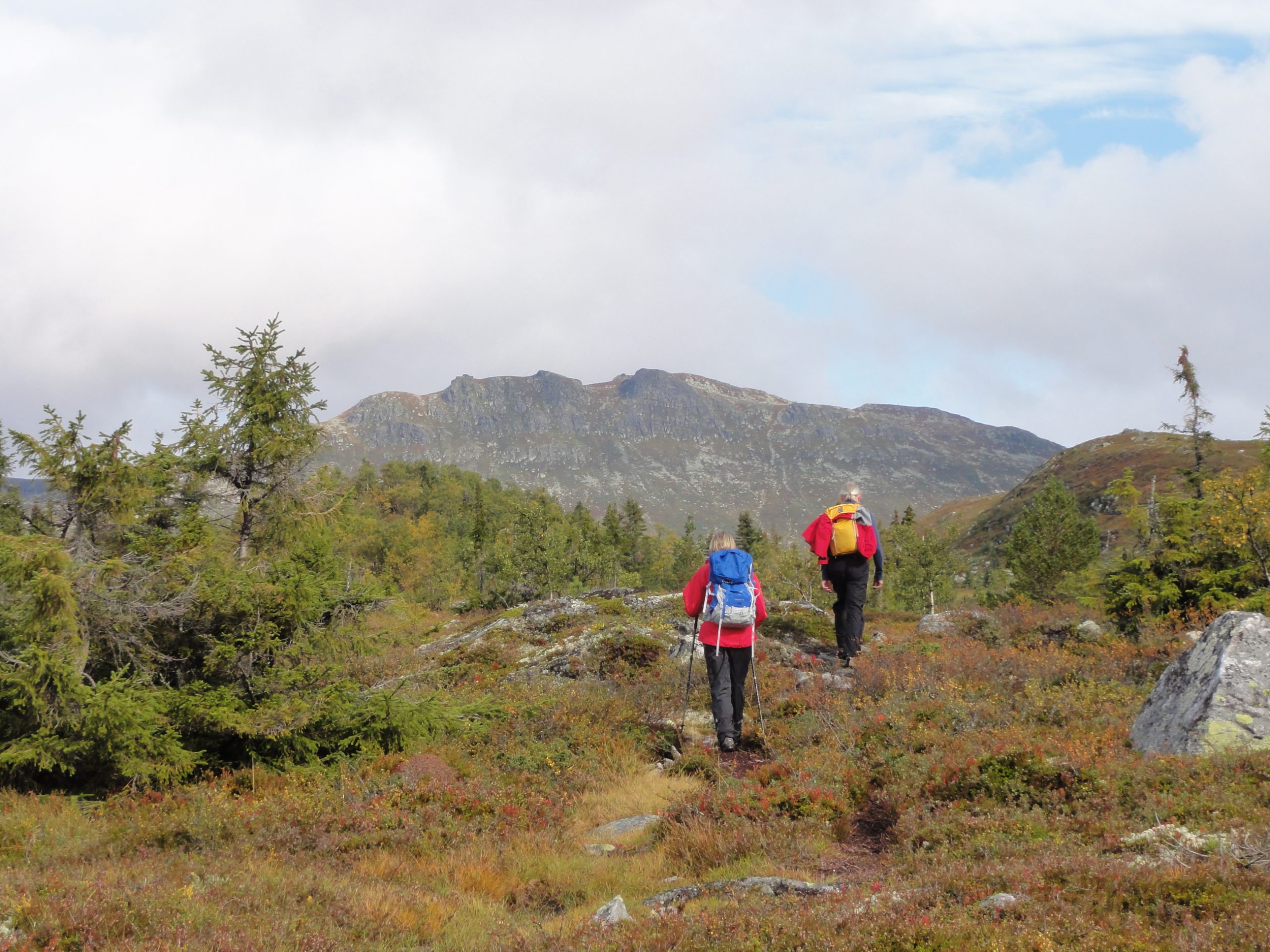 Our destination was Tempelseter. We unloaded the car and carried our supplies through the trees into the hut which was pleasantly warm with the heating turned on by mobile phone the day before. With rain expected we quickly changed, racing to beat the gathering clouds, and headed up above the tree line.