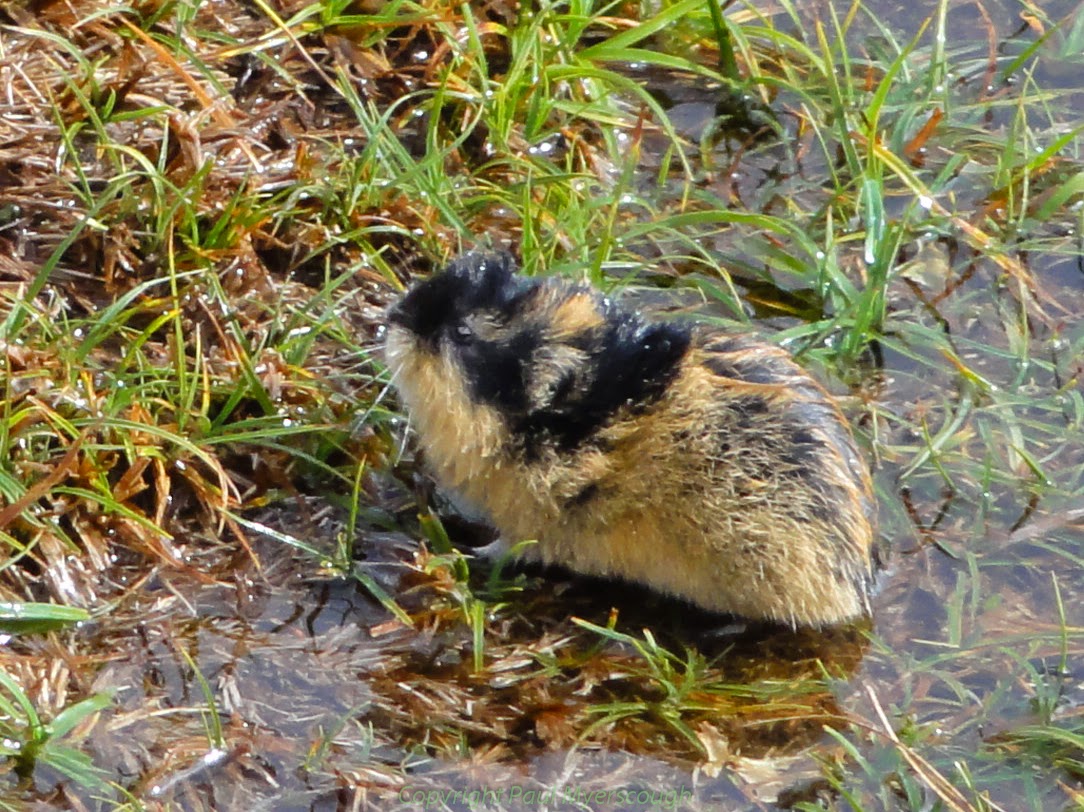 As the blueberries began to thin out, at about 1000m we noticed more and more activity in the sparse undergrowth. 2014 is a ‘Lemen’ year. A year in which the lemmings appear in great numbers. Most disappeared down their holes when then saw us, but the one in the picture below at least partially lived-up to its reputation – it made a great fuss, and much angry noise as it ran around and around eventually hiding under some krekling. It did not explode in anger however as they are supposed to.
